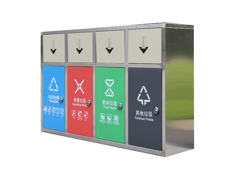 垃圾桶的四种分类分别是可回收垃圾、厨余垃圾、有害垃圾和其他垃圾。可回收垃圾主要包括废纸、塑料、玻璃、金属和布料五大类;厨余垃圾(上海称湿垃圾)包括剩菜剩饭、骨头、菜根菜叶、果皮等食品类废物;有害垃圾含有对人体健康有害的重金属、有毒的物质或者对环境造成现实危害或者潜在危害的废弃物。其他垃圾(上海称干垃圾)包括砖瓦陶瓷、渣土、卫生间废纸、纸巾等难以回收的废弃物及尘土、食品袋(盒)。